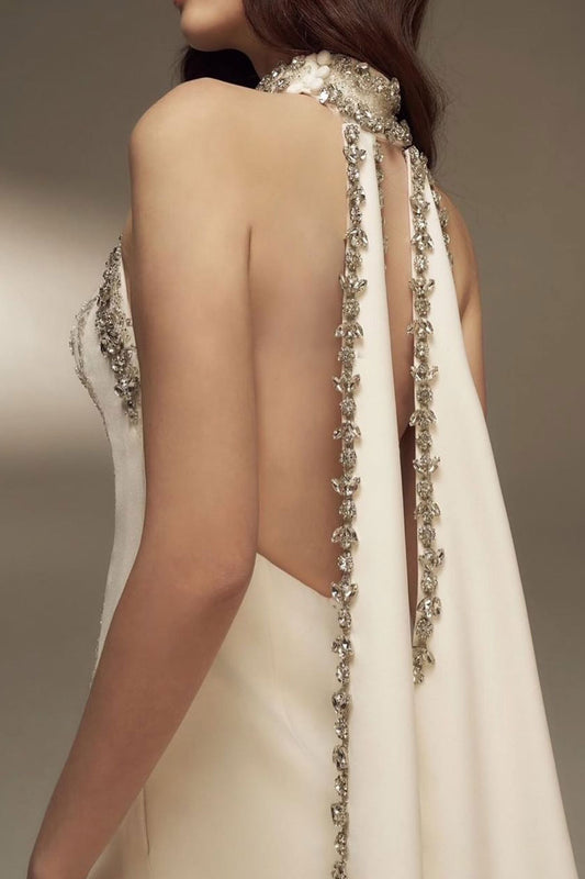 NR Halter White Silver Overskirt Gown
