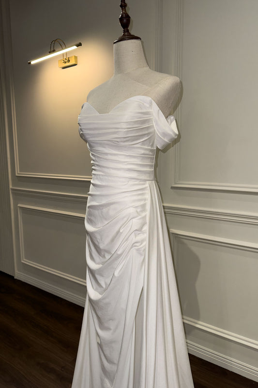 GH Robin Off Shoulder White Satin Gown