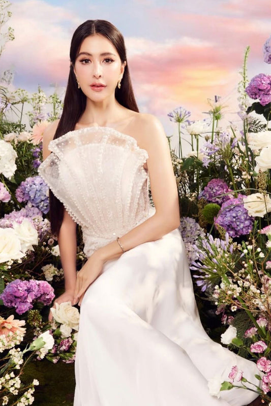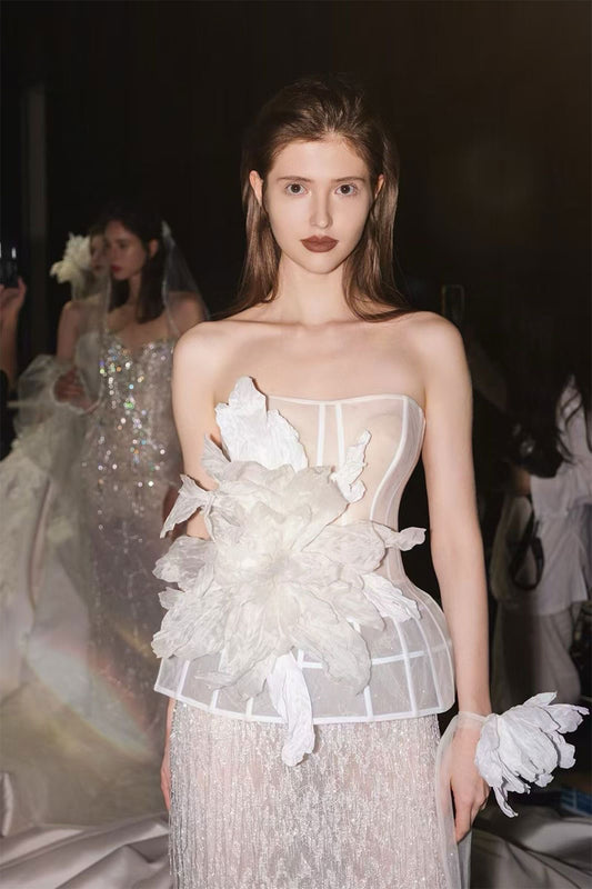 LX Dahlia White Tube Detachable Rose Gown